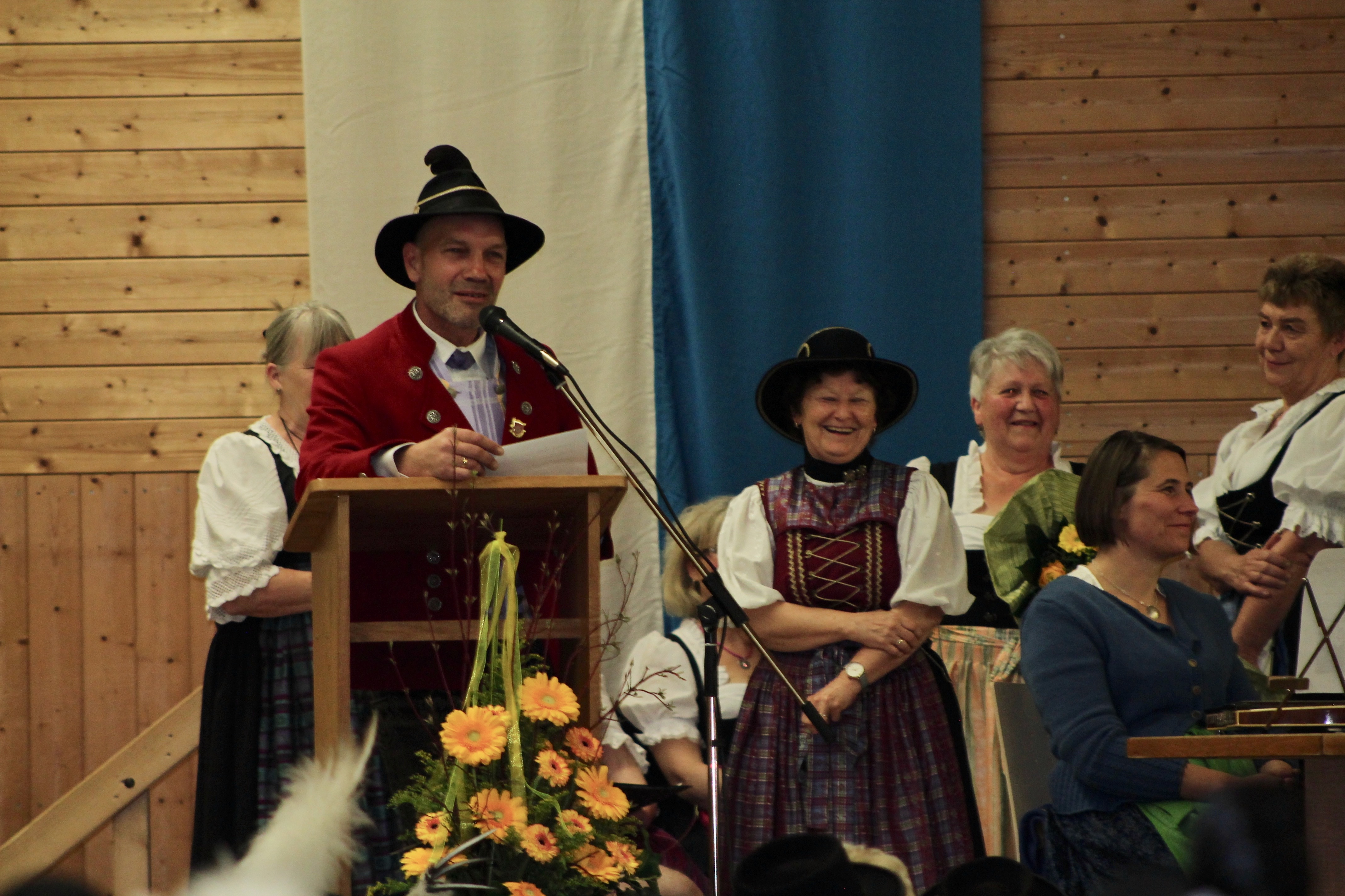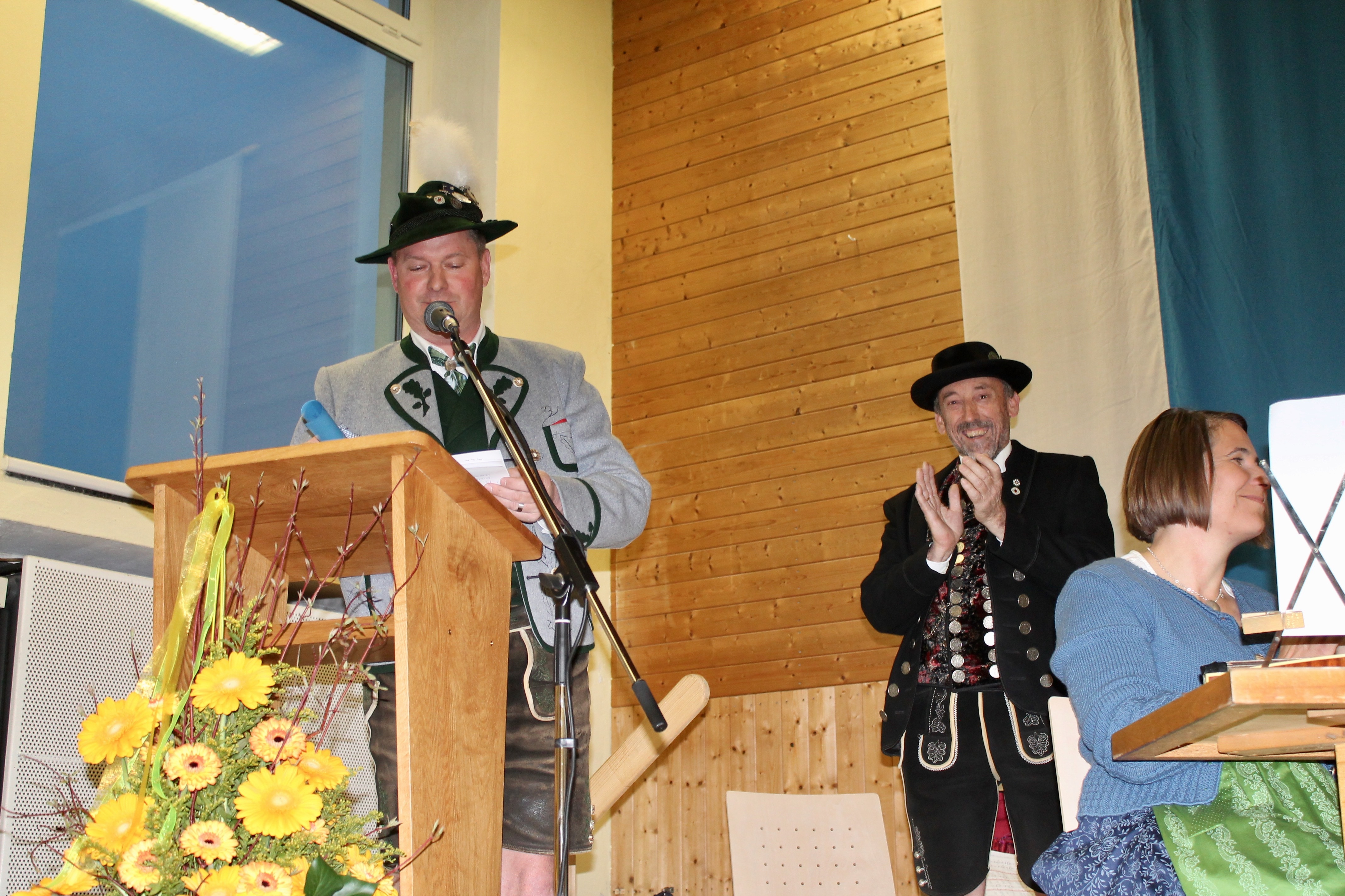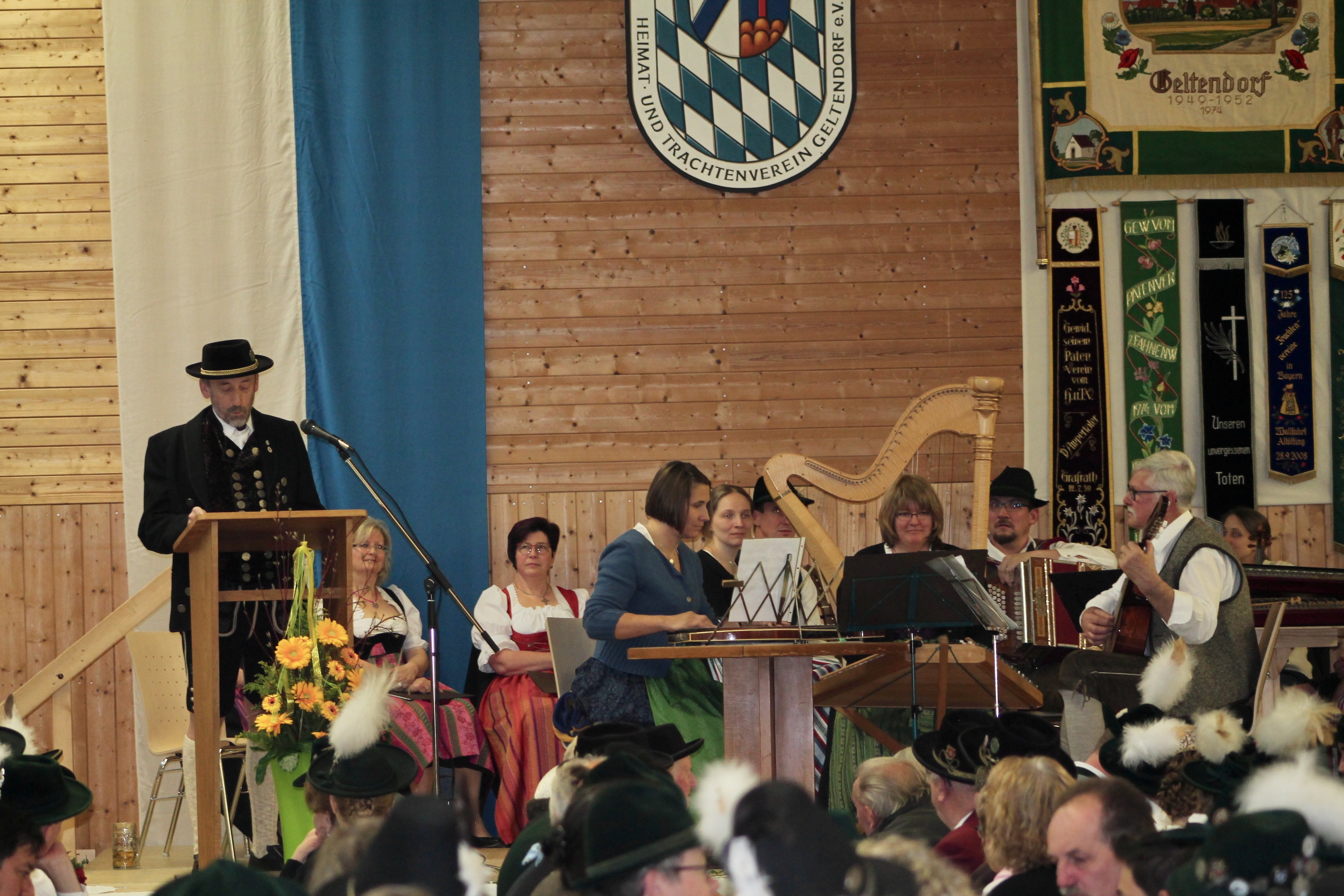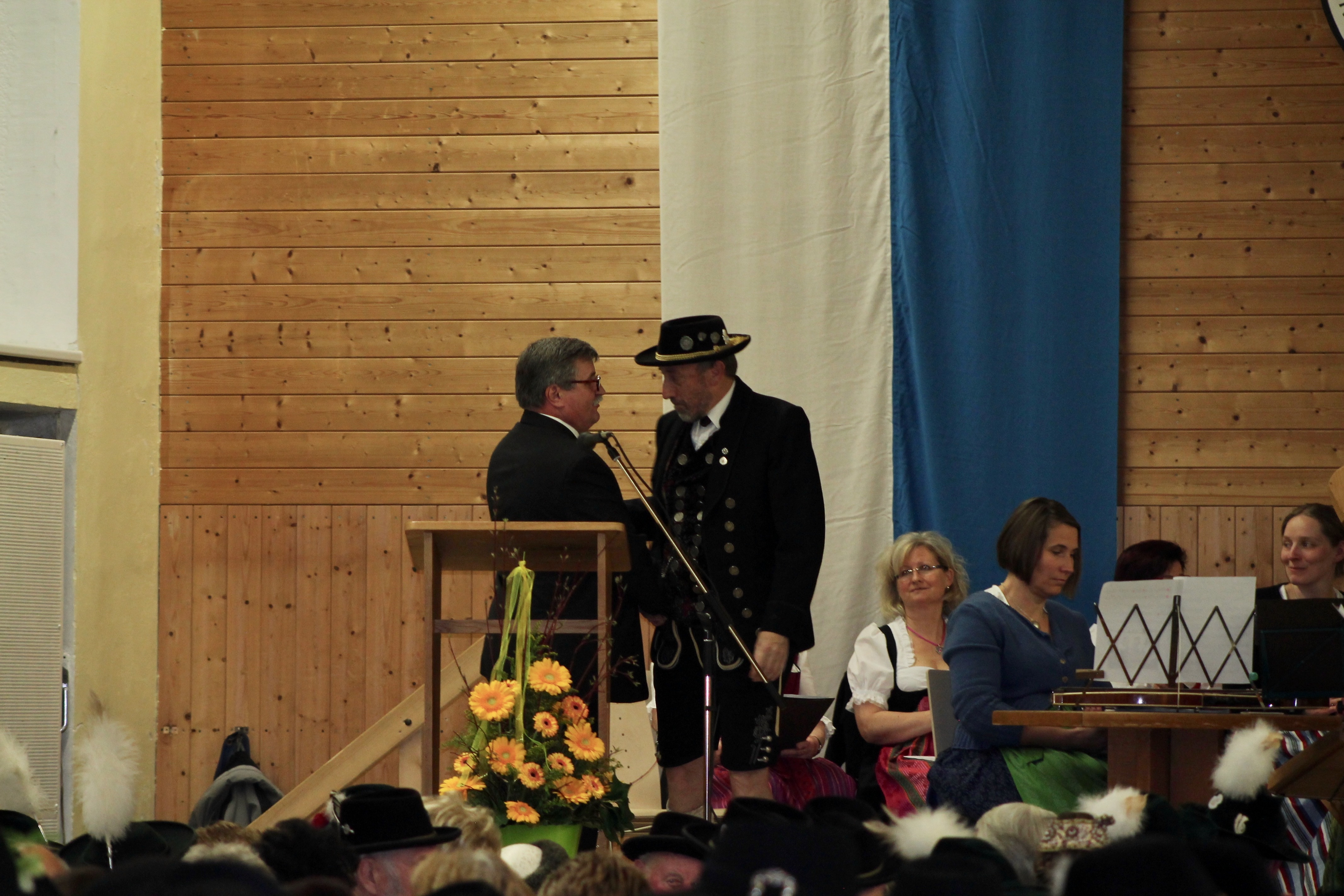Fast pünktlich begann 1. Vorsitzender Wolfgang Kurz und begrüßte neben den Ehrengästen und Vereinen vor allem die Mitwirkenden unseres Festabends in der Turnhalle. Besonders freute er sich, dass sich darunter gleich 2 Gruppen aus Geltendorf befanden: der Geltendorfer Dreigsang aus den Reihen des Gesangvereins, sowie die Geltendorfer Stubenmusik. Die Erlbach Musi und der Heuwinkl Zwoagsang sorgten zusammen mit der Blaskapelle Türkenfeld für einen abwechslungsreichen und unterhaltsamen Abend. Die musikalischen Darbietungen wurden jeweils nur kurz für einen Schwank aus unserer Vereinschronik bzw. für ein Grußwort unterbrochen. 1. Bürgermeister Wilhelm Lehmann berichtete in seinen Ausführungen etwas zur Geschichte von Geltendorf. 1. Gauvorstand Florian Vief hatte die wohl schönste Aufgabe des Abends: er durfte gleich drei unserer Vereinsmitglieder mit der Gauehrennadel auszeichnen.