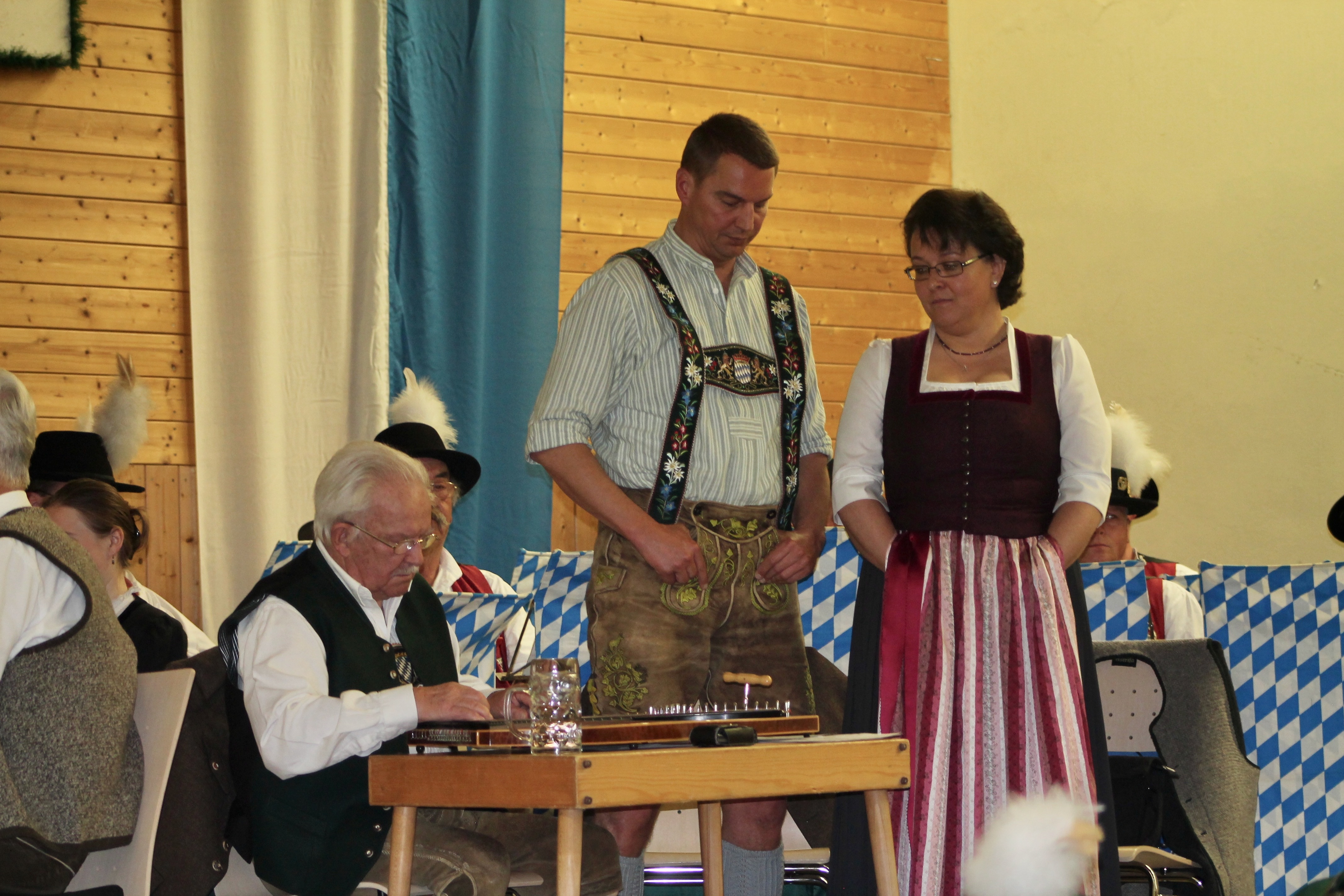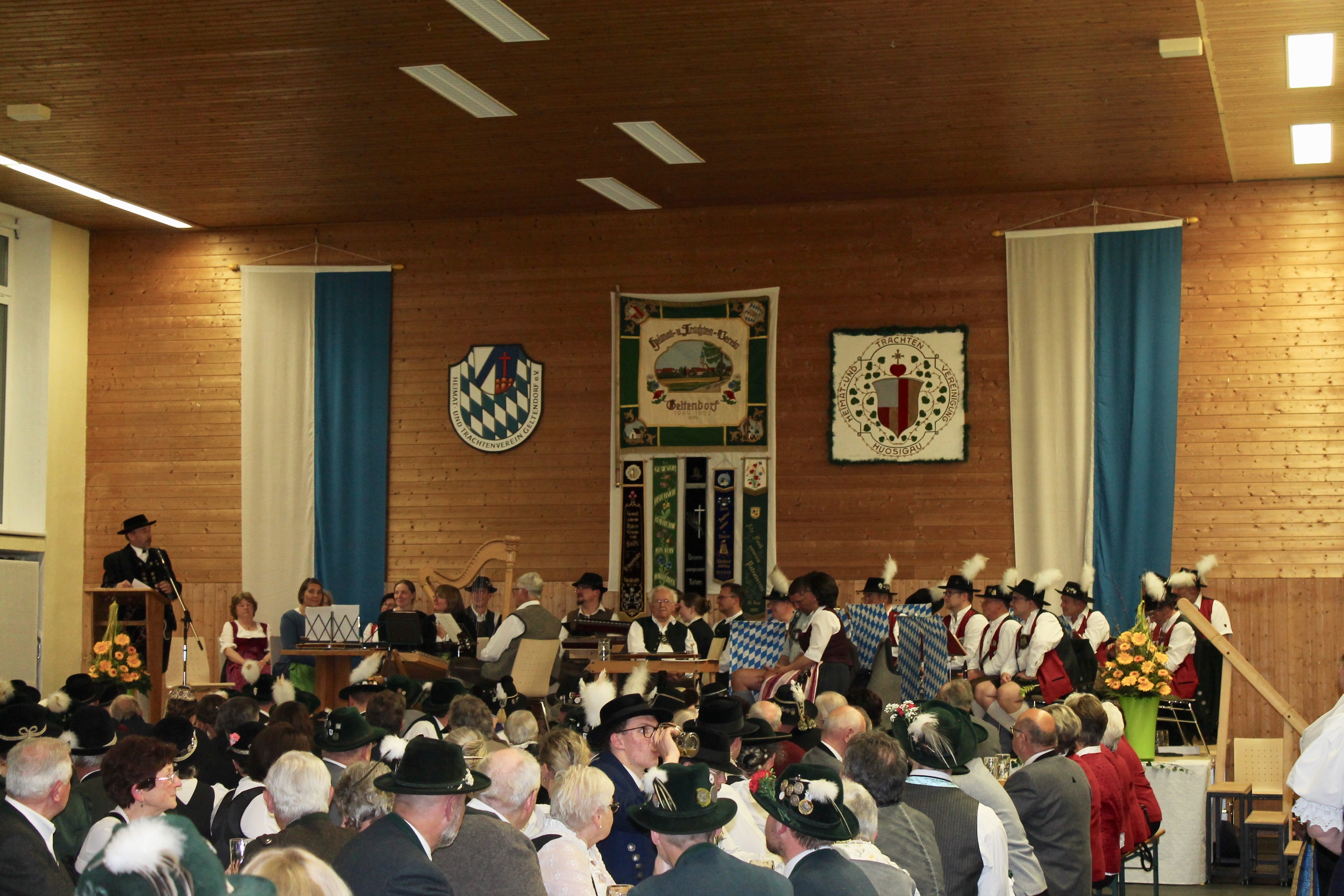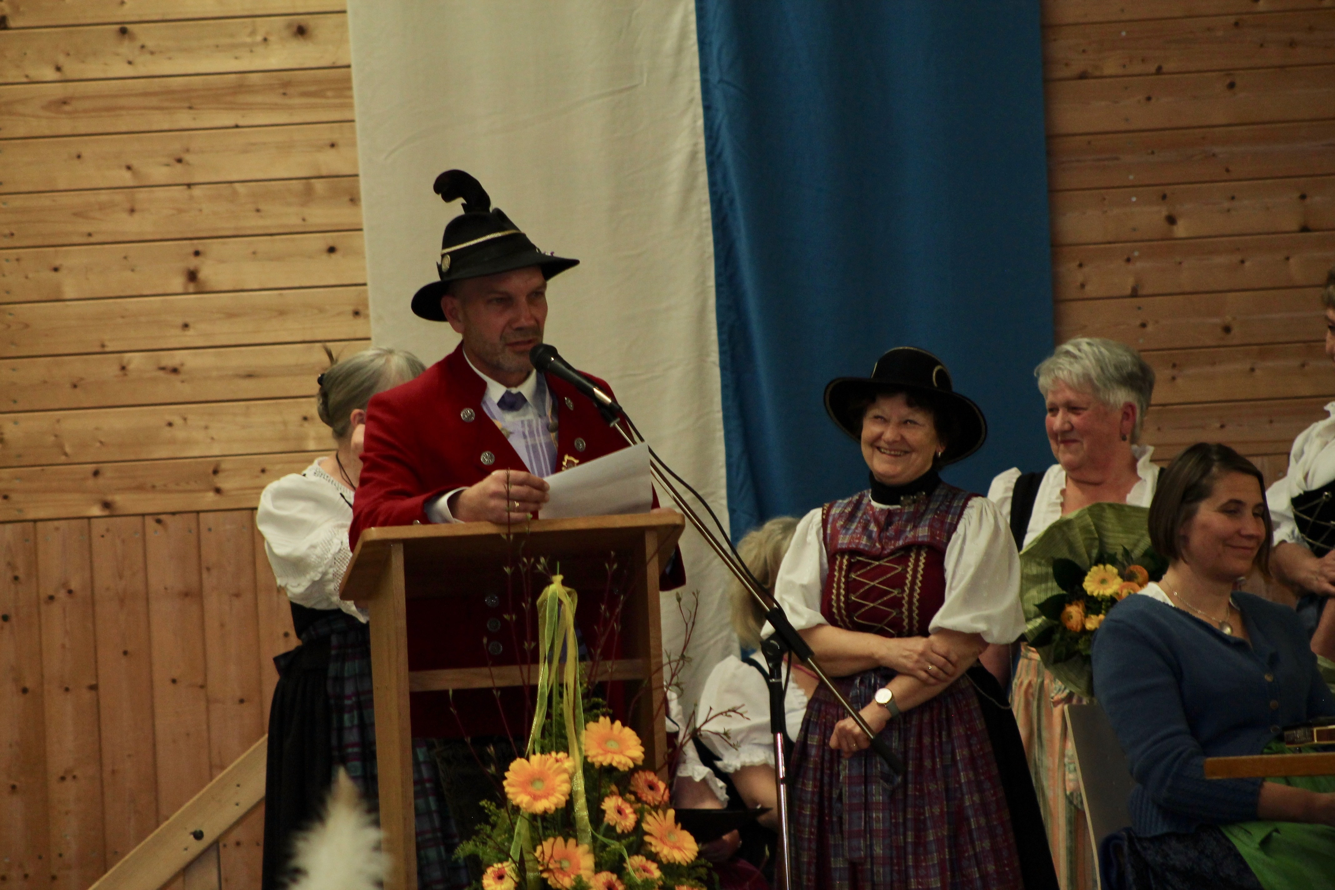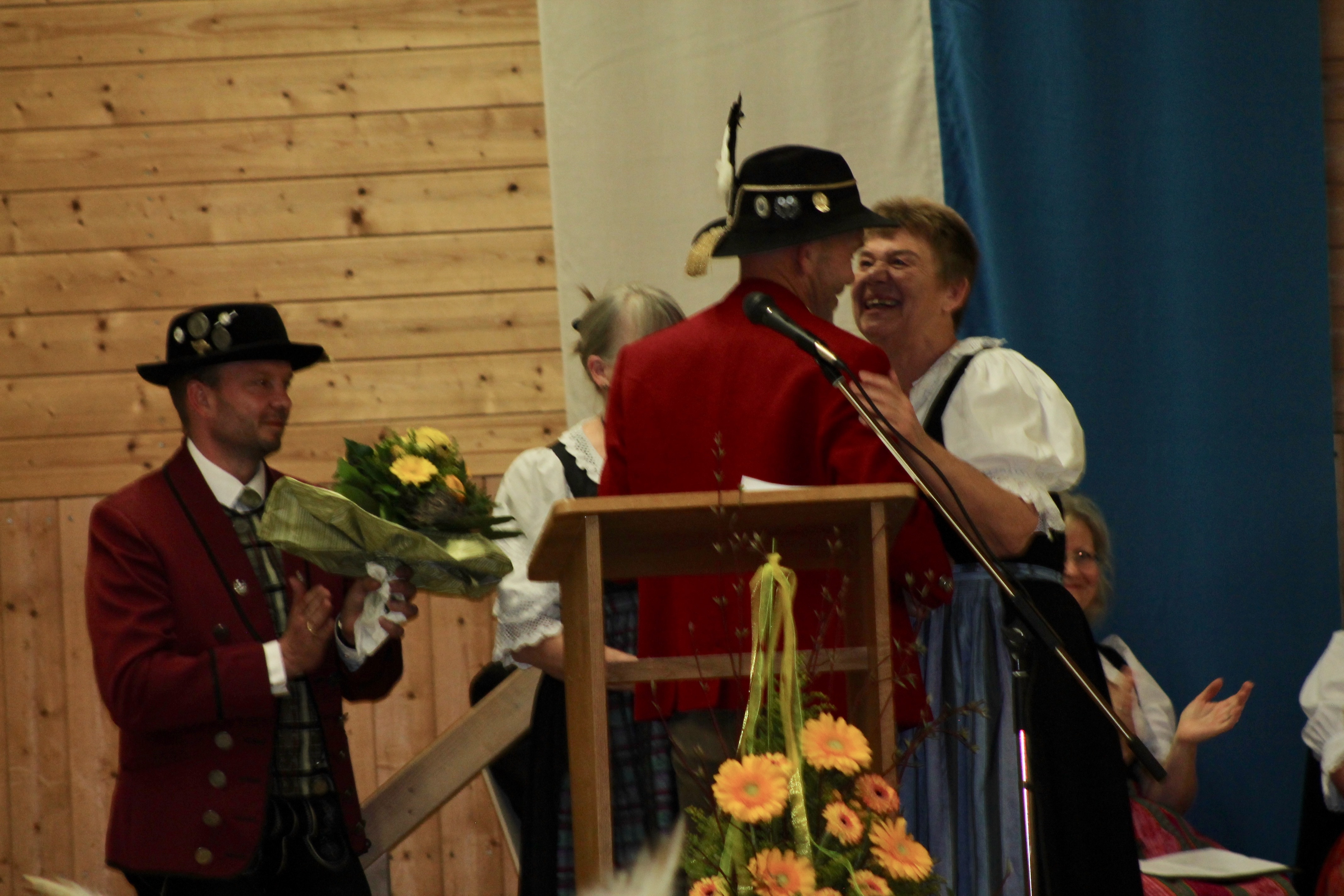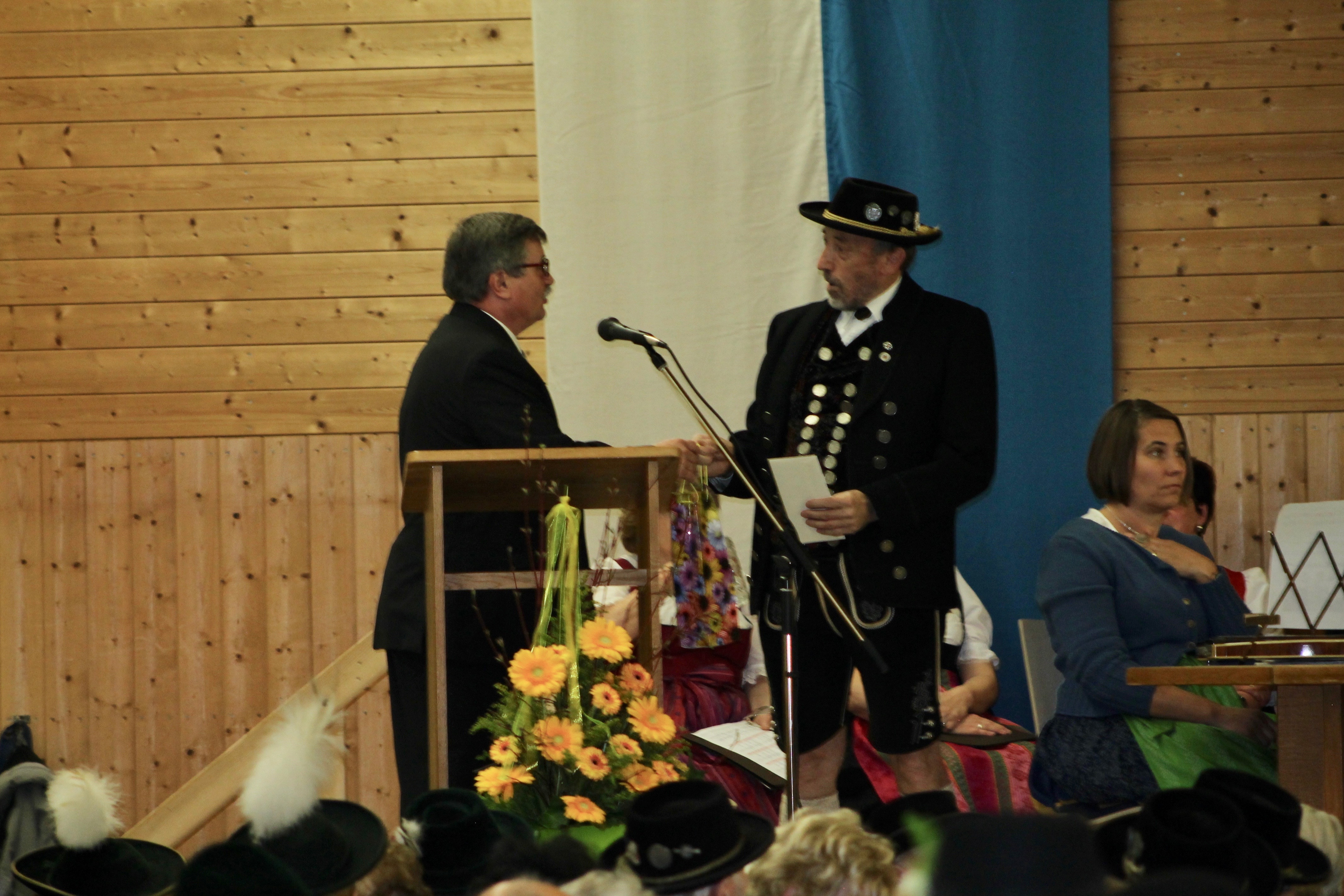 Fast pünktlich begann 1. Vorsitzender Wolfgang Kurz und begrüßte neben den Ehrengästen und Vereinen vor allem die Mitwirkenden unseres Festabends in der Turnhalle. Besonders freute er sich, dass sich darunter gleich 2 Gruppen aus Geltendorf befanden: der Geltendorfer Dreigsang aus den Reihen des Gesangvereins, sowie die Geltendorfer Stubenmusik. Die Erlbach Musi und der Heuwinkl Zwoagsang sorgten zusammen mit der Blaskapelle Türkenfeld für einen abwechslungsreichen und unterhaltsamen Abend. Die musikalischen Darbietungen wurden jeweils nur kurz für einen Schwank aus unserer Vereinschronik bzw. für ein Grußwort unterbrochen. 1. Bürgermeister Wilhelm Lehmann berichtete in seinen Ausführungen etwas zur Geschichte von Geltendorf. 1. Gauvorstand Florian Vief hatte die wohl schönste Aufgabe des Abends: er durfte gleich drei unserer Vereinsmitglieder mit der Gauehrennadel auszeichnen.