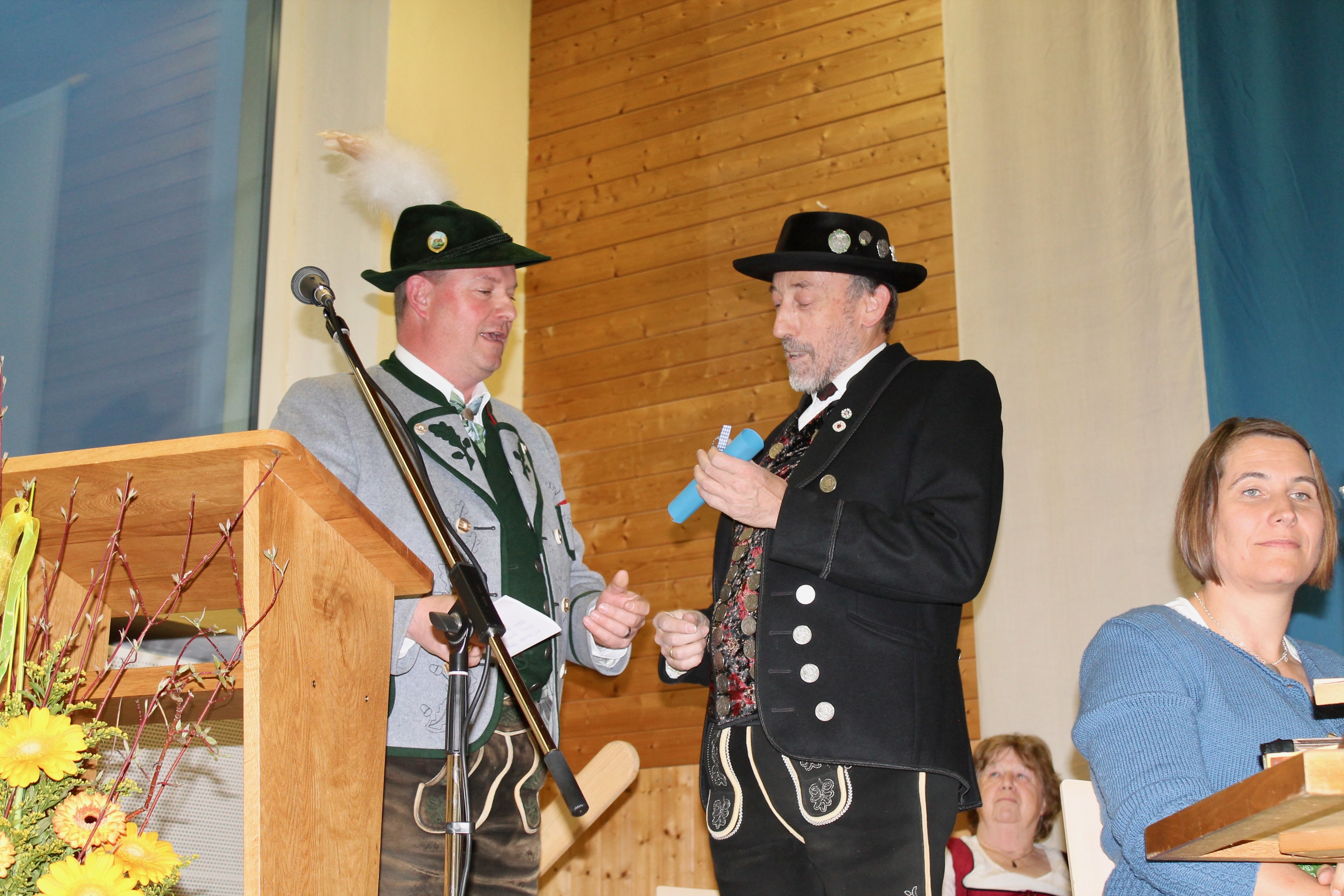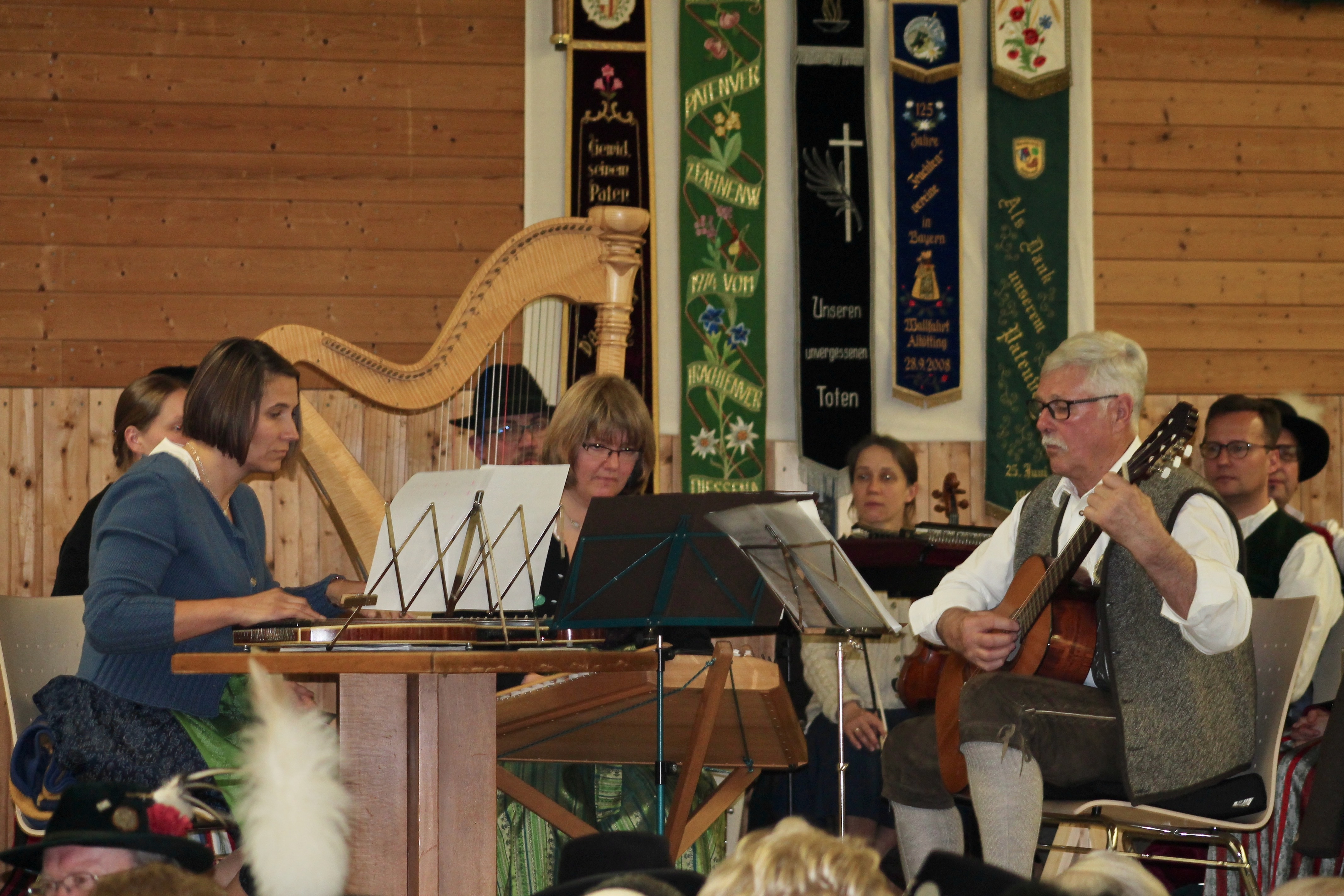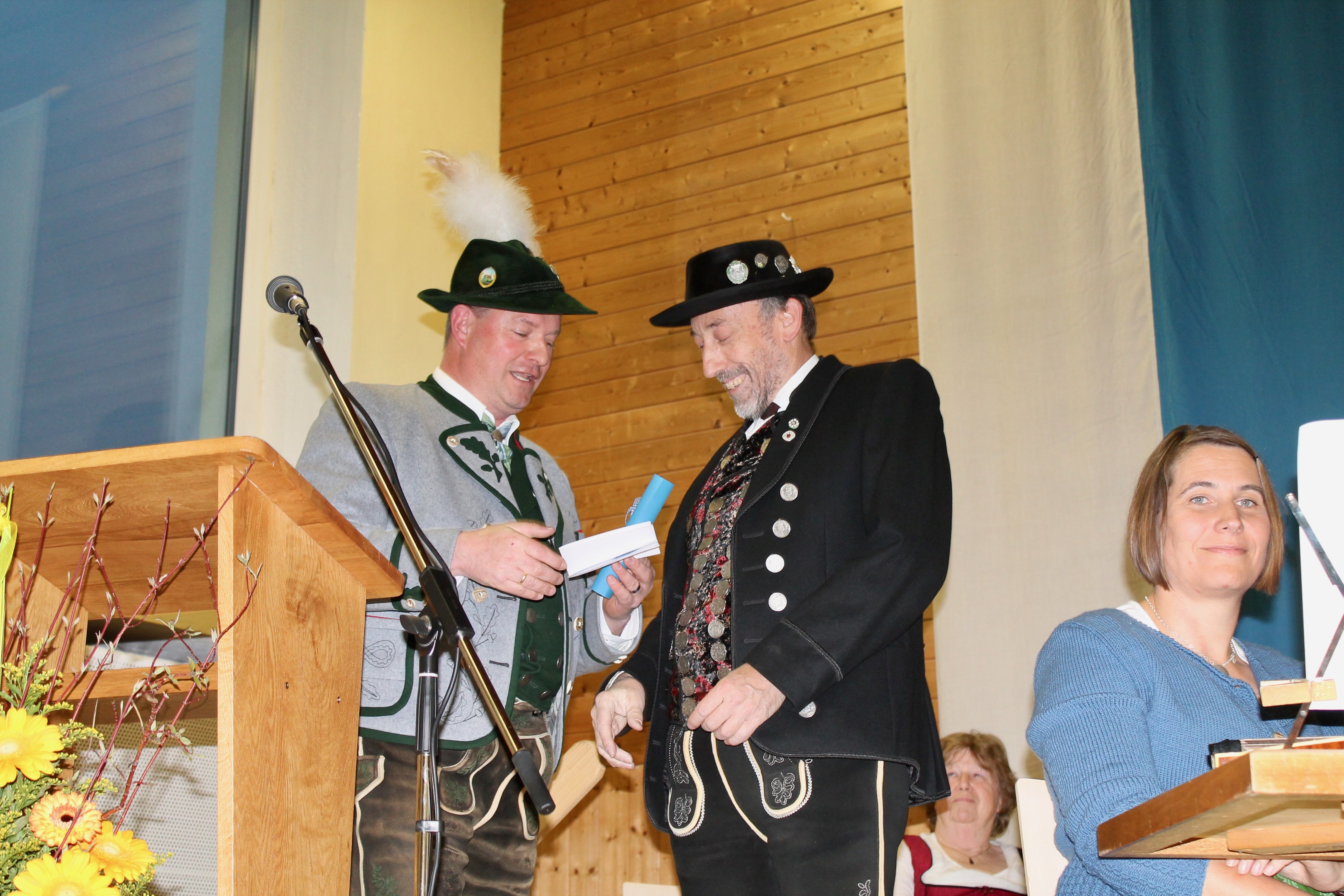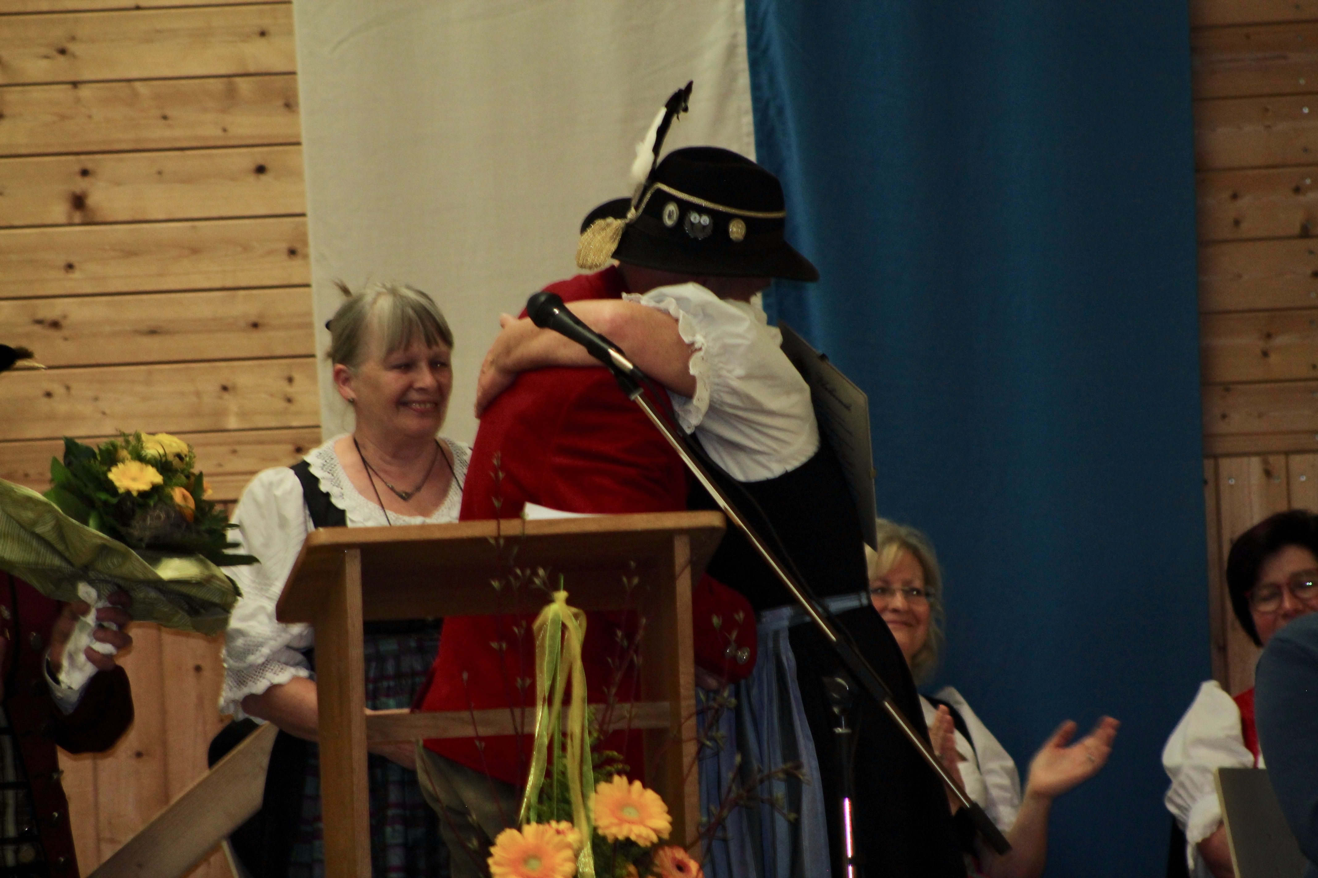Fast pünktlich begann 1. Vorsitzender Wolfgang Kurz und begrüßte neben den Ehrengästen und Vereinen vor allem die Mitwirkenden unseres Festabends in der Turnhalle. Besonders freute er sich, dass sich darunter gleich 2 Gruppen aus Geltendorf befanden: der Geltendorfer Dreigsang aus den Reihen des Gesangvereins, sowie die Geltendorfer Stubenmusik. Die Erlbach Musi und der Heuwinkl Zwoagsang sorgten zusammen mit der Blaskapelle Türkenfeld für einen abwechslungsreichen und unterhaltsamen Abend. Die musikalischen Darbietungen wurden jeweils nur kurz für einen Schwank aus unserer Vereinschronik bzw. für ein Grußwort unterbrochen. 1. Bürgermeister Wilhelm Lehmann berichtete in seinen Ausführungen etwas zur Geschichte von Geltendorf. 1. Gauvorstand Florian Vief hatte die wohl schönste Aufgabe des Abends: er durfte gleich drei unserer Vereinsmitglieder mit der Gauehrennadel auszeichnen.