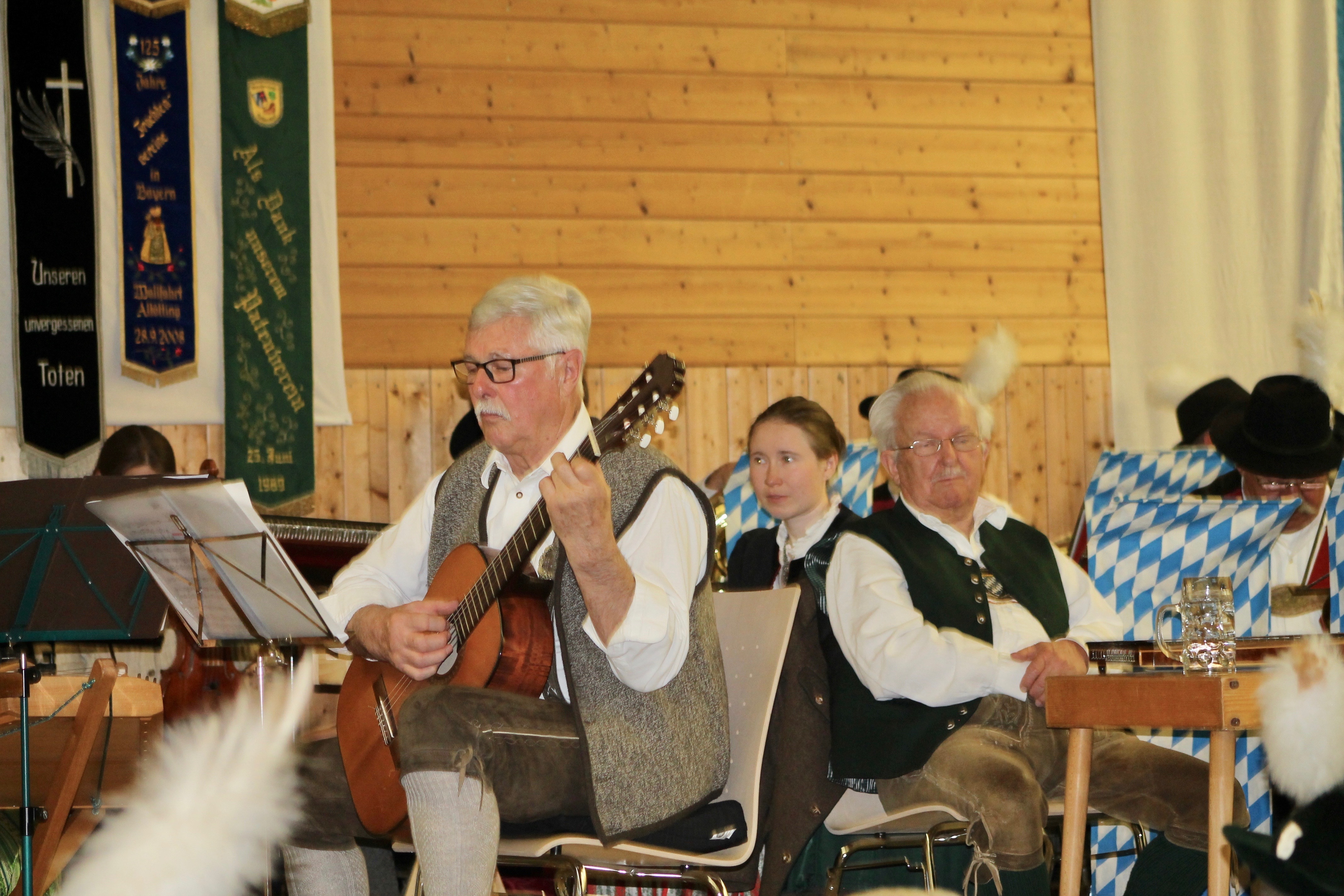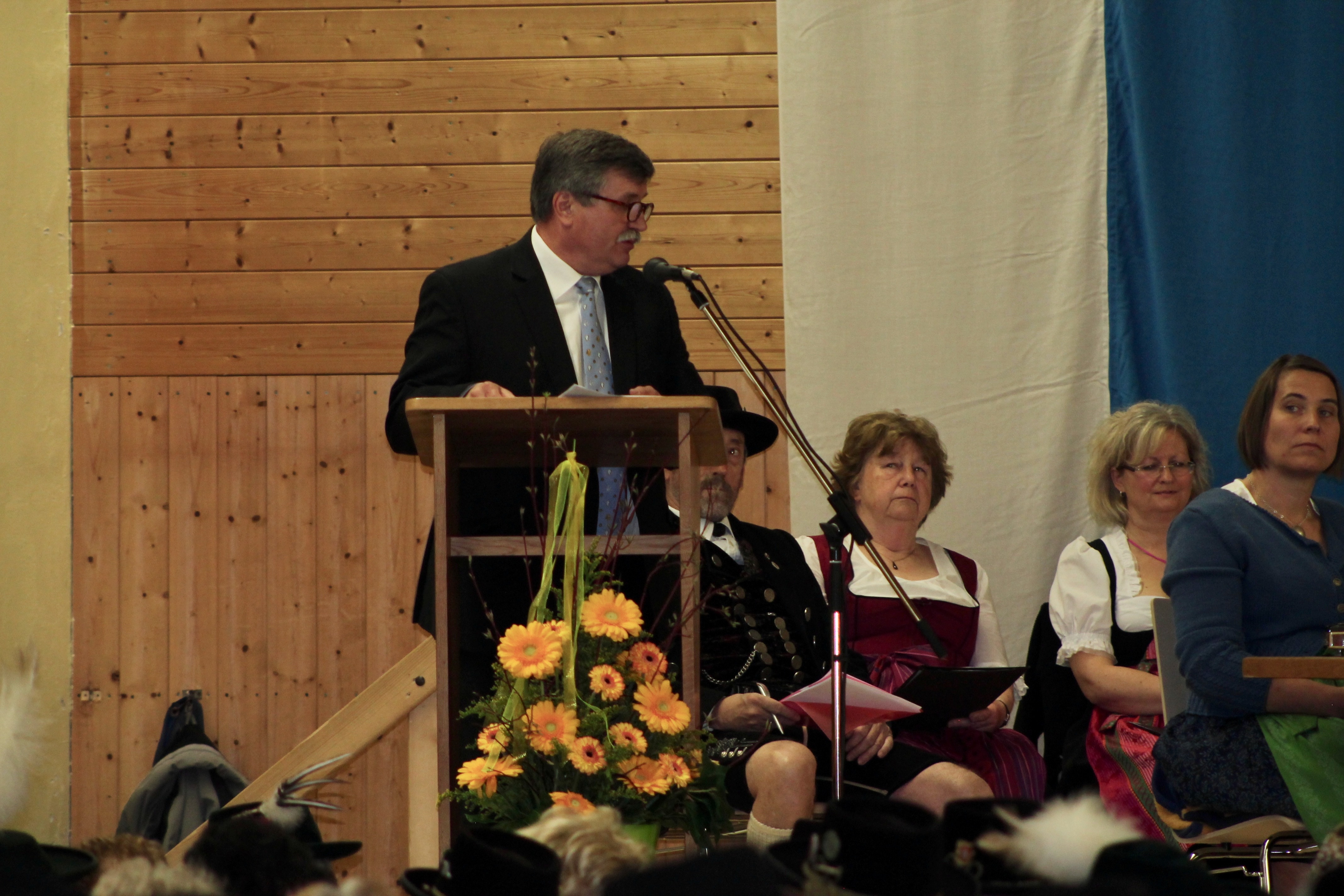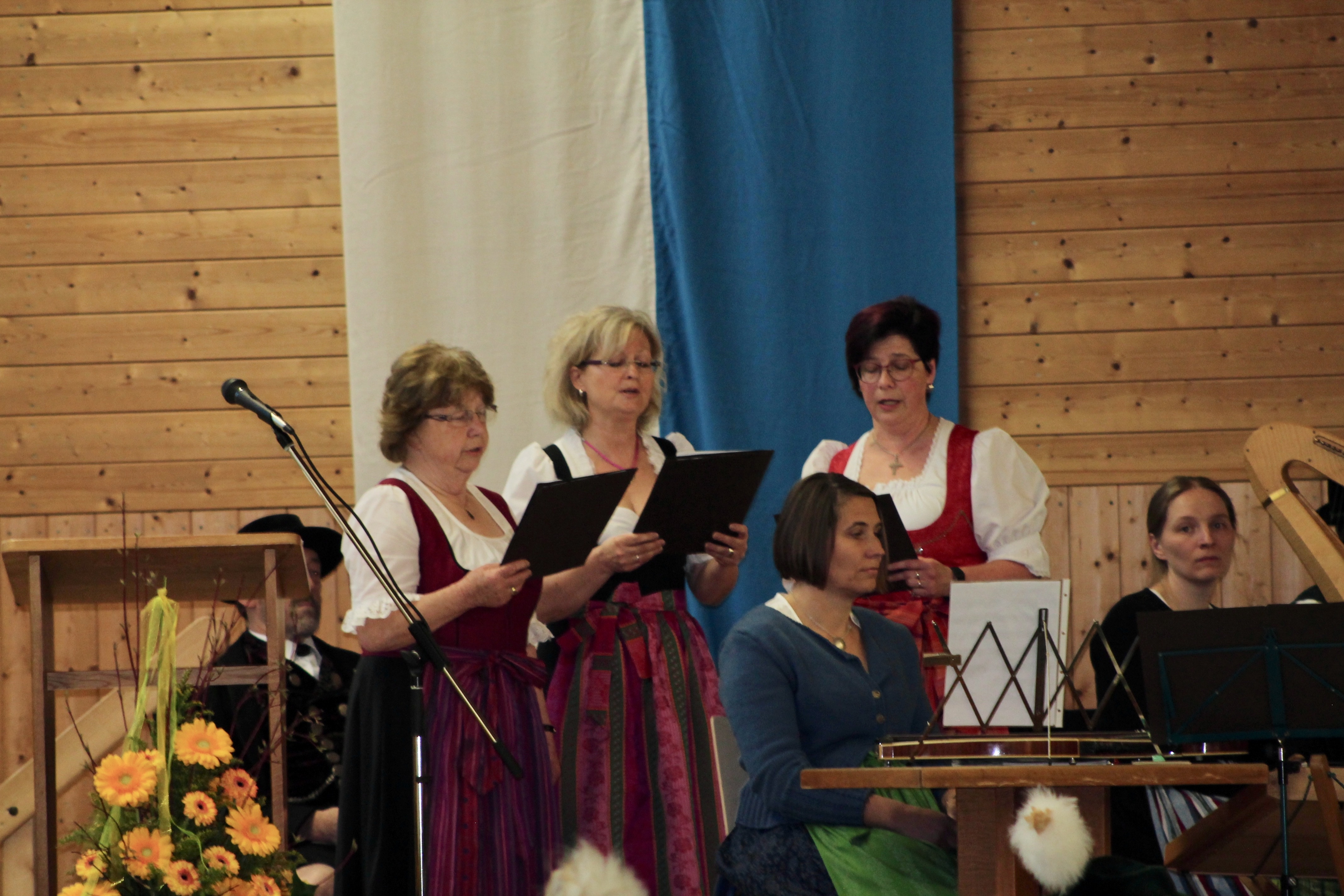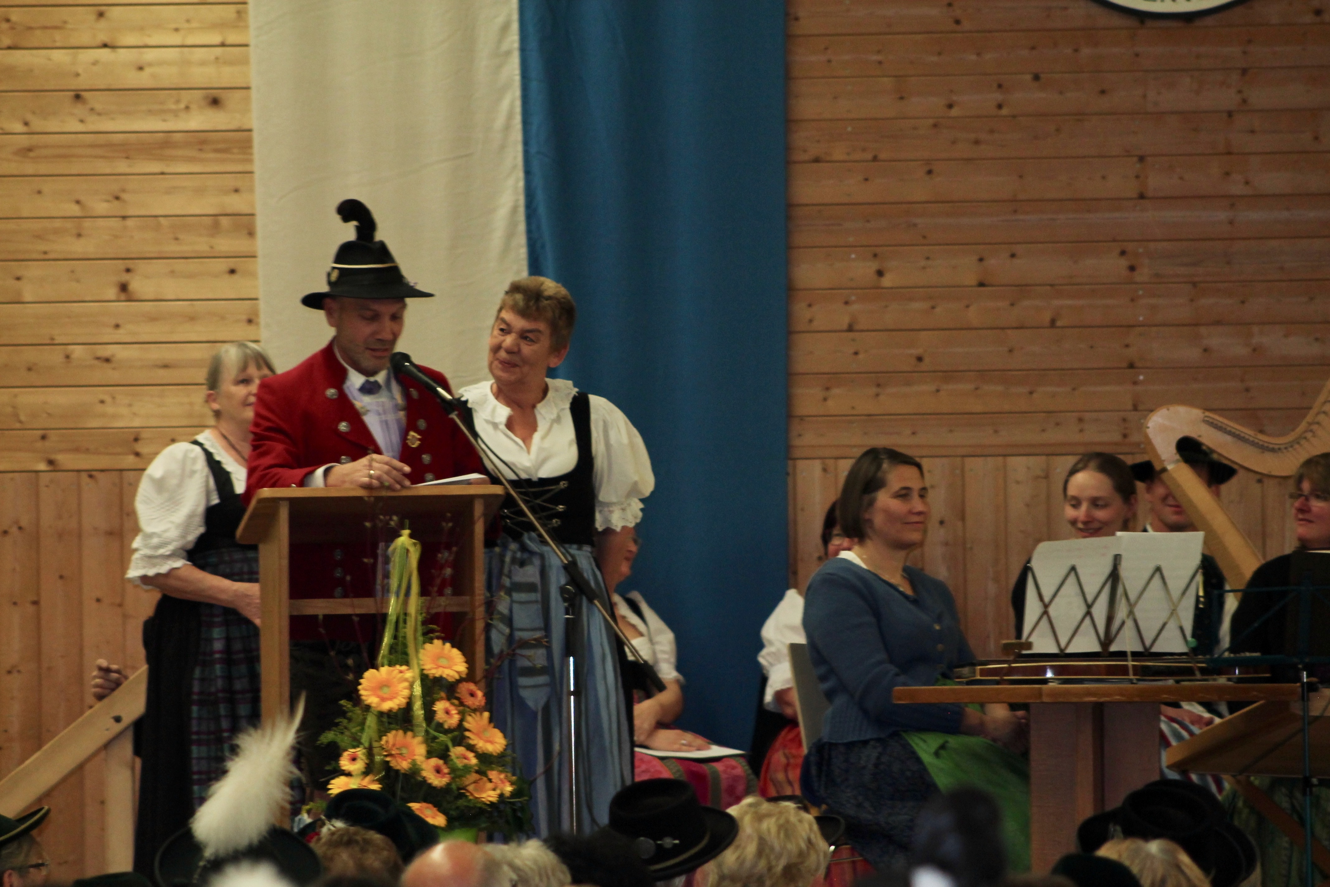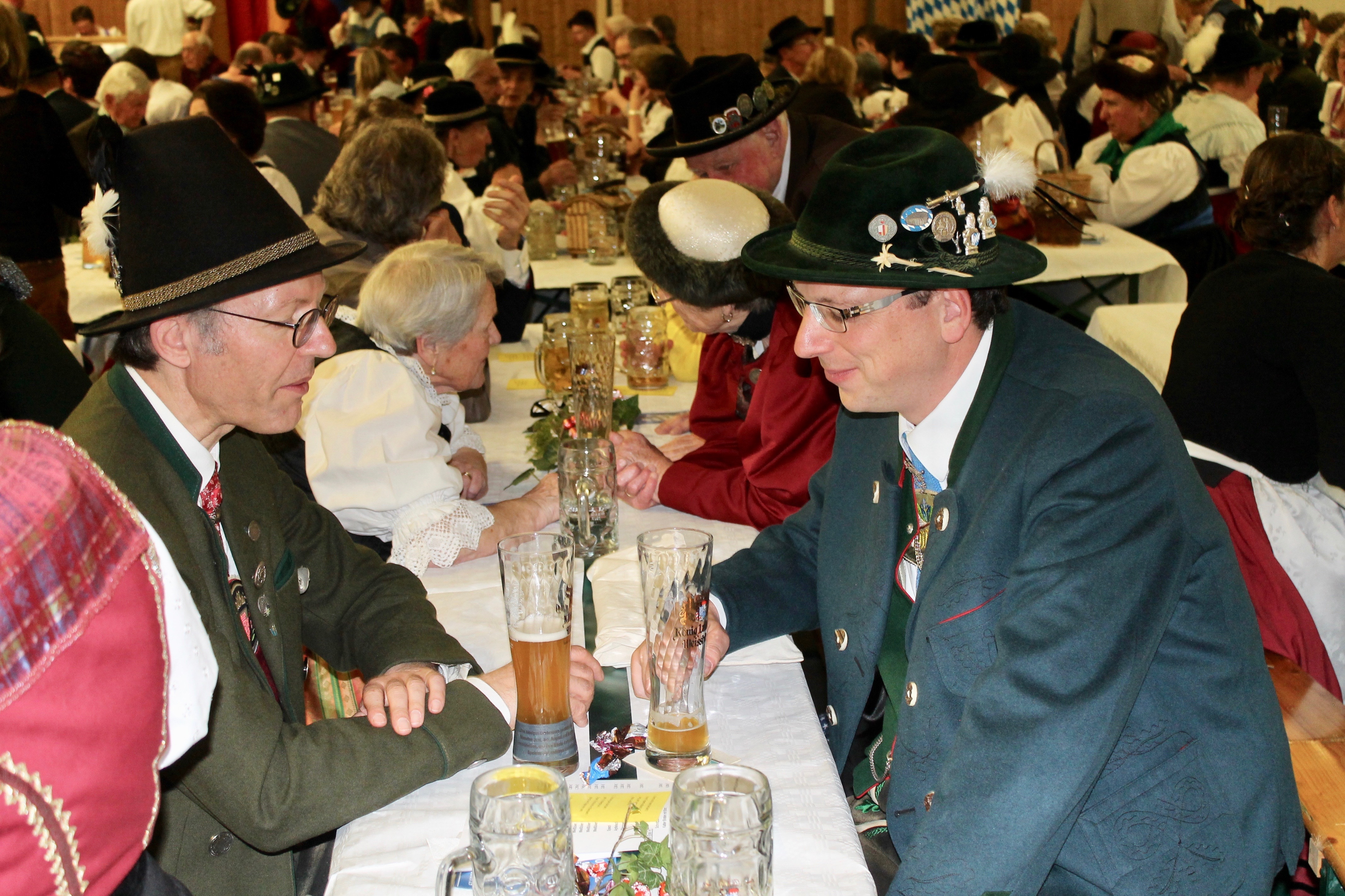 Fast pünktlich begann 1. Vorsitzender Wolfgang Kurz und begrüßte neben den Ehrengästen und Vereinen vor allem die Mitwirkenden unseres Festabends in der Turnhalle. Besonders freute er sich, dass sich darunter gleich 2 Gruppen aus Geltendorf befanden: der Geltendorfer Dreigsang aus den Reihen des Gesangvereins, sowie die Geltendorfer Stubenmusik. Die Erlbach Musi und der Heuwinkl Zwoagsang sorgten zusammen mit der Blaskapelle Türkenfeld für einen abwechslungsreichen und unterhaltsamen Abend. Die musikalischen Darbietungen wurden jeweils nur kurz für einen Schwank aus unserer Vereinschronik bzw. für ein Grußwort unterbrochen. 1. Bürgermeister Wilhelm Lehmann berichtete in seinen Ausführungen etwas zur Geschichte von Geltendorf. 1. Gauvorstand Florian Vief hatte die wohl schönste Aufgabe des Abends: er durfte gleich drei unserer Vereinsmitglieder mit der Gauehrennadel auszeichnen.
