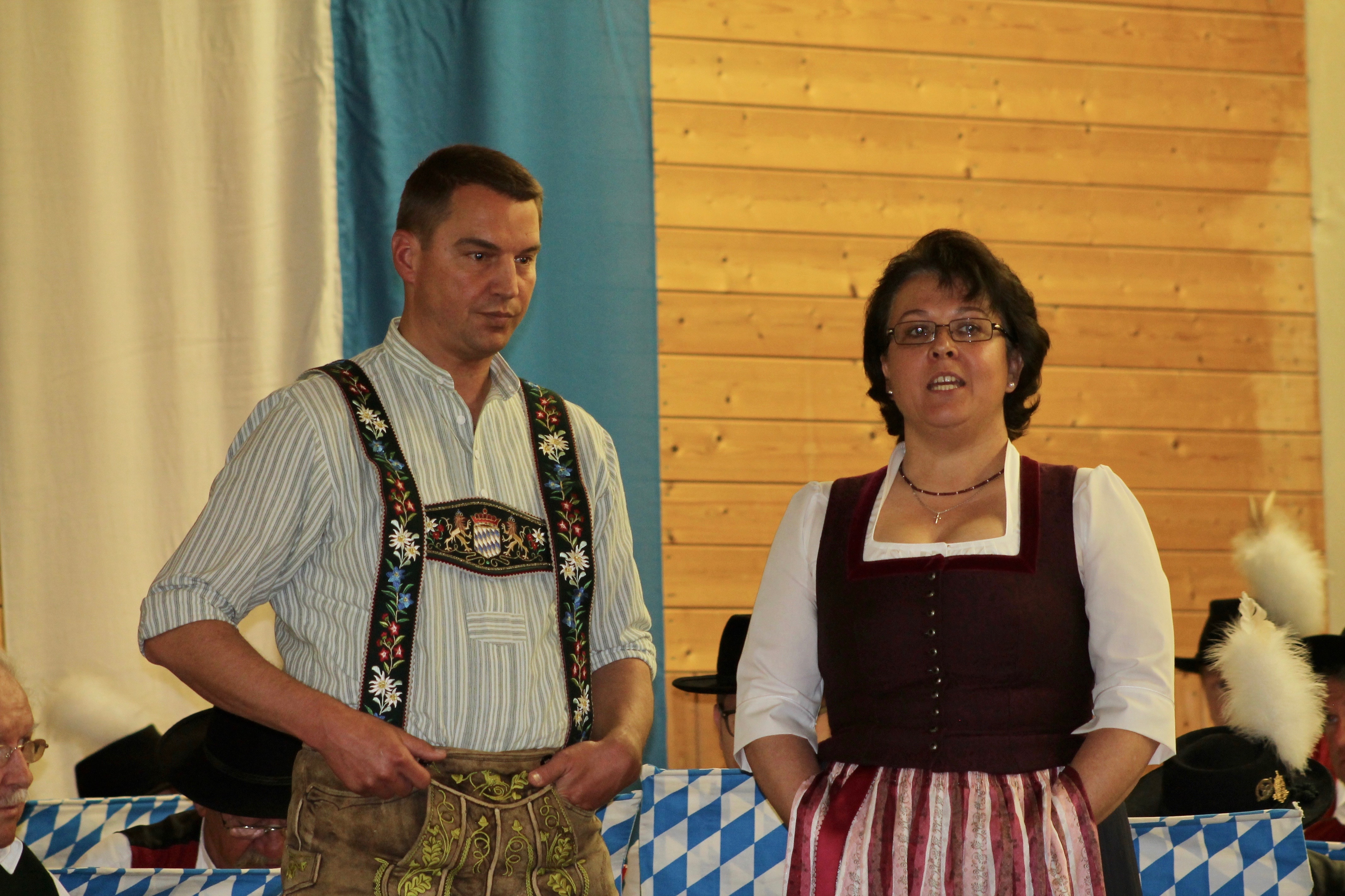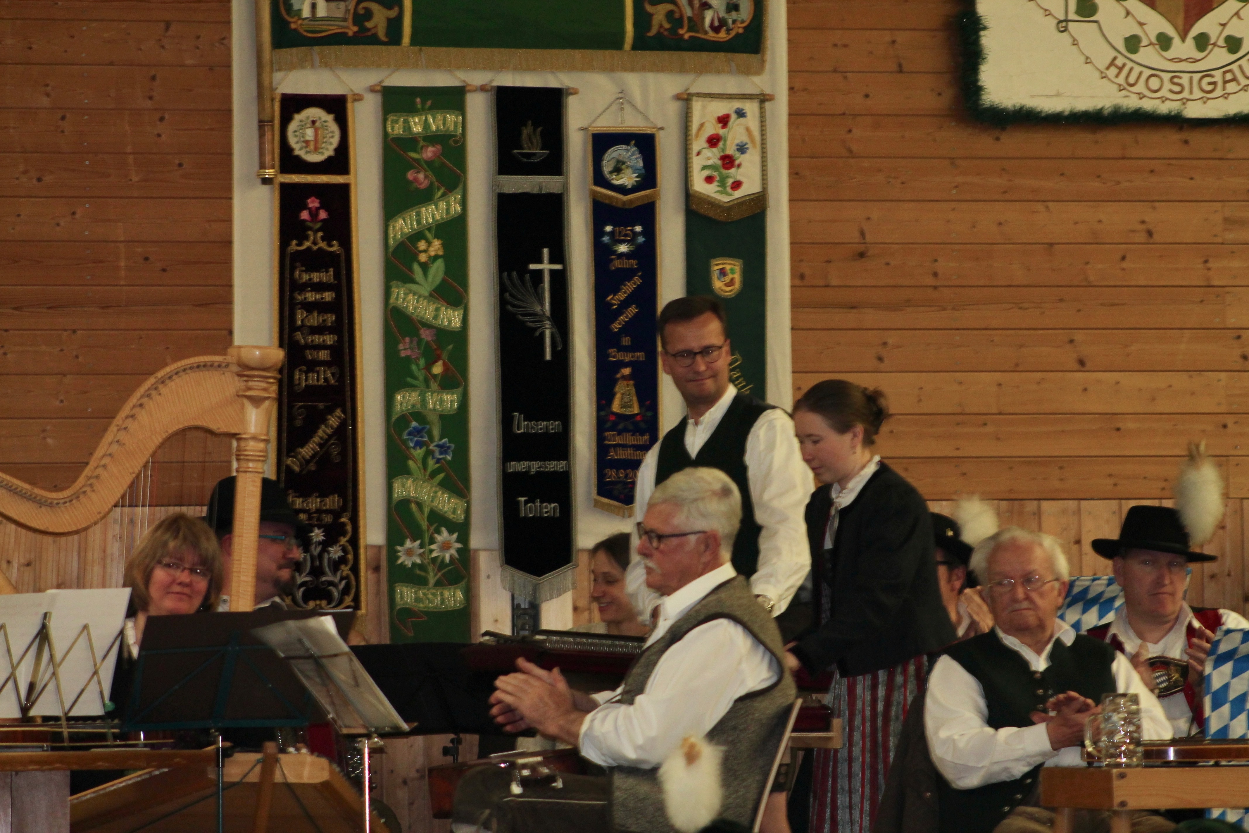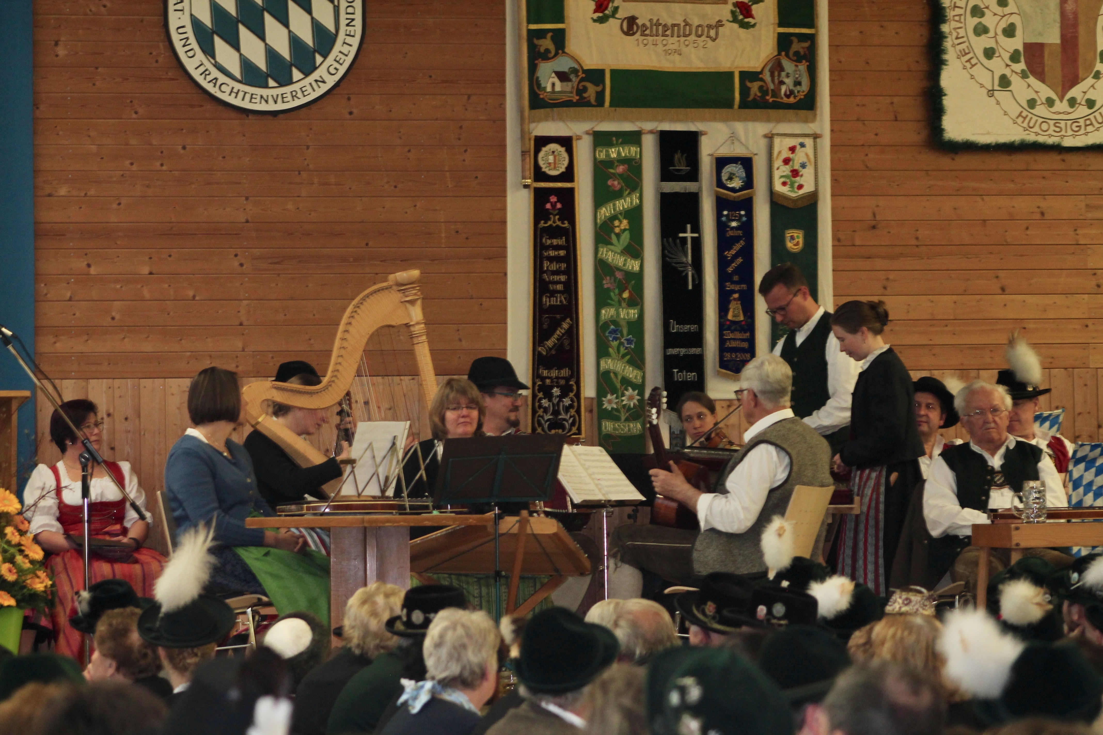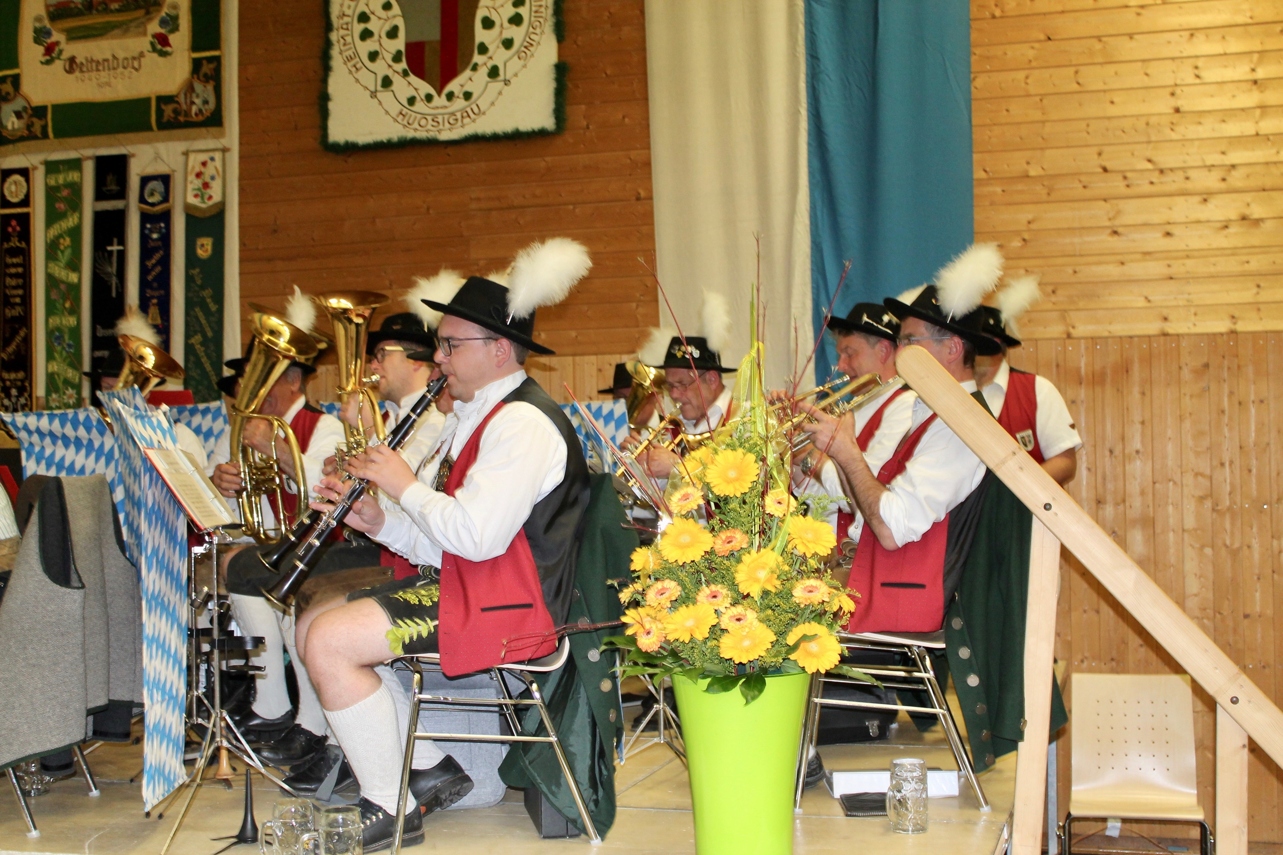 Ganze 14 Fahnenabordnungen, sowie etliche Vertreter der geladenen Vereine fanden sich zum Standkonzert, welches durch das Blasorchester Geltendorf und den Dießener Spielmannszug umrahmt wurde, am Geltendorfer Maibaum ein. Anschließend wurde gemeinsam zum Festzelt marschiert und mit dem Heimatabend das Gaufestwochenende in Geltendorf eingeleitet.