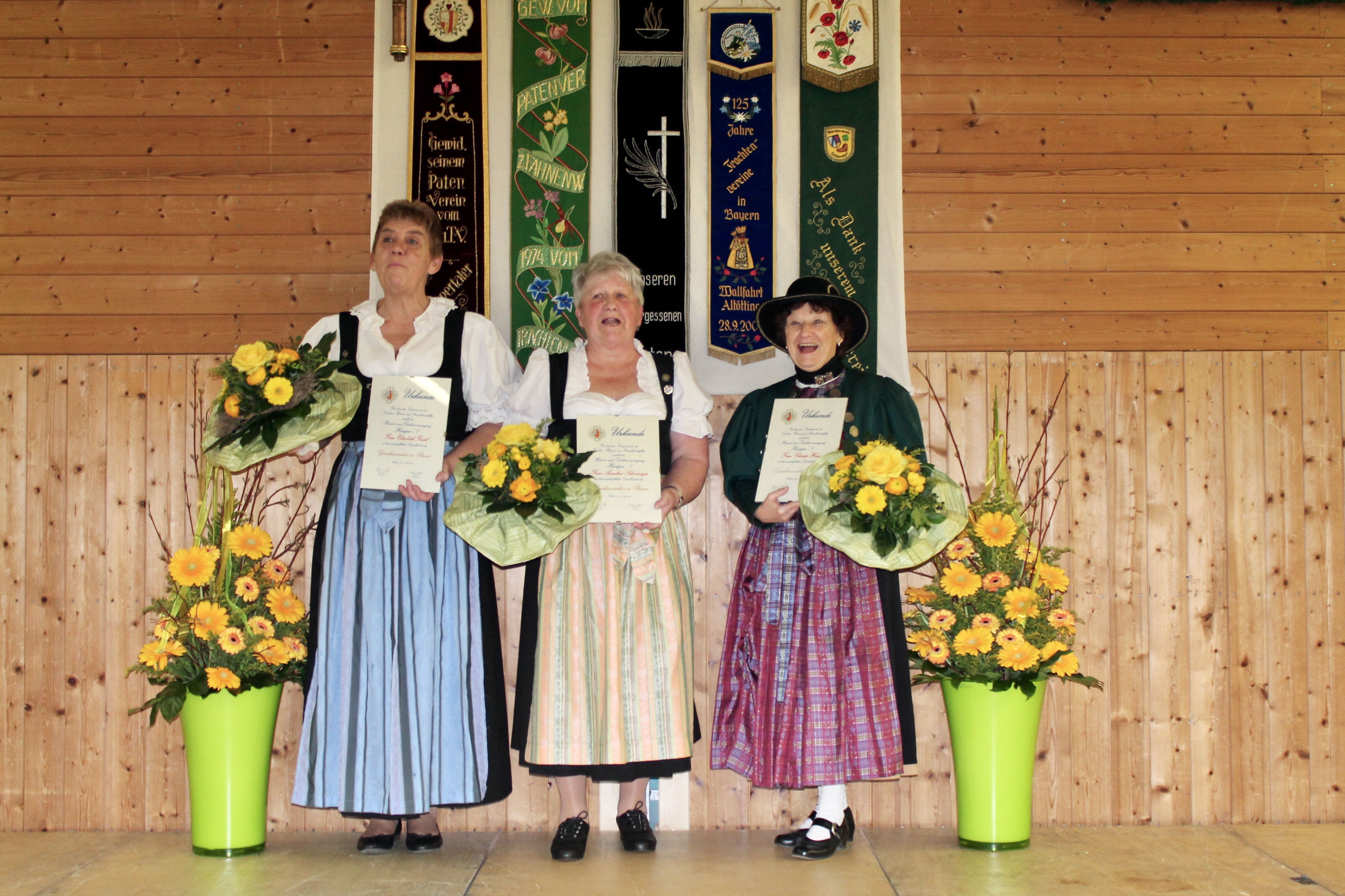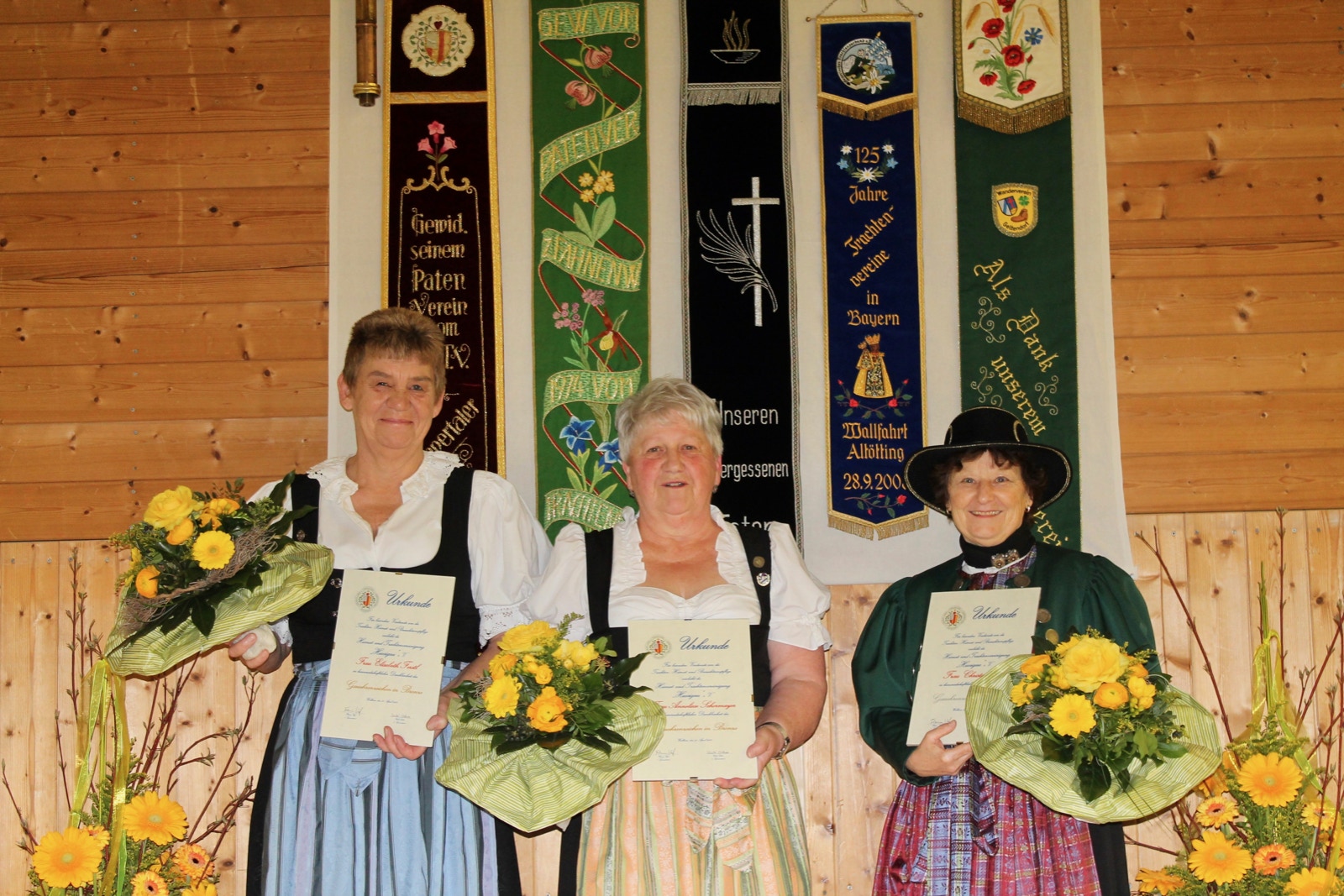 Elisabeth Ferstl und Anneliese Schormayer erhielten für Ihr langjähriges Engagement die Ehrennadel in Bronze. Christa Haas durfte sich aufgrund ihrer langjährigen Tätigkeit in unserer Vorstandschaft über die silberne Gauehrennadel freuen.