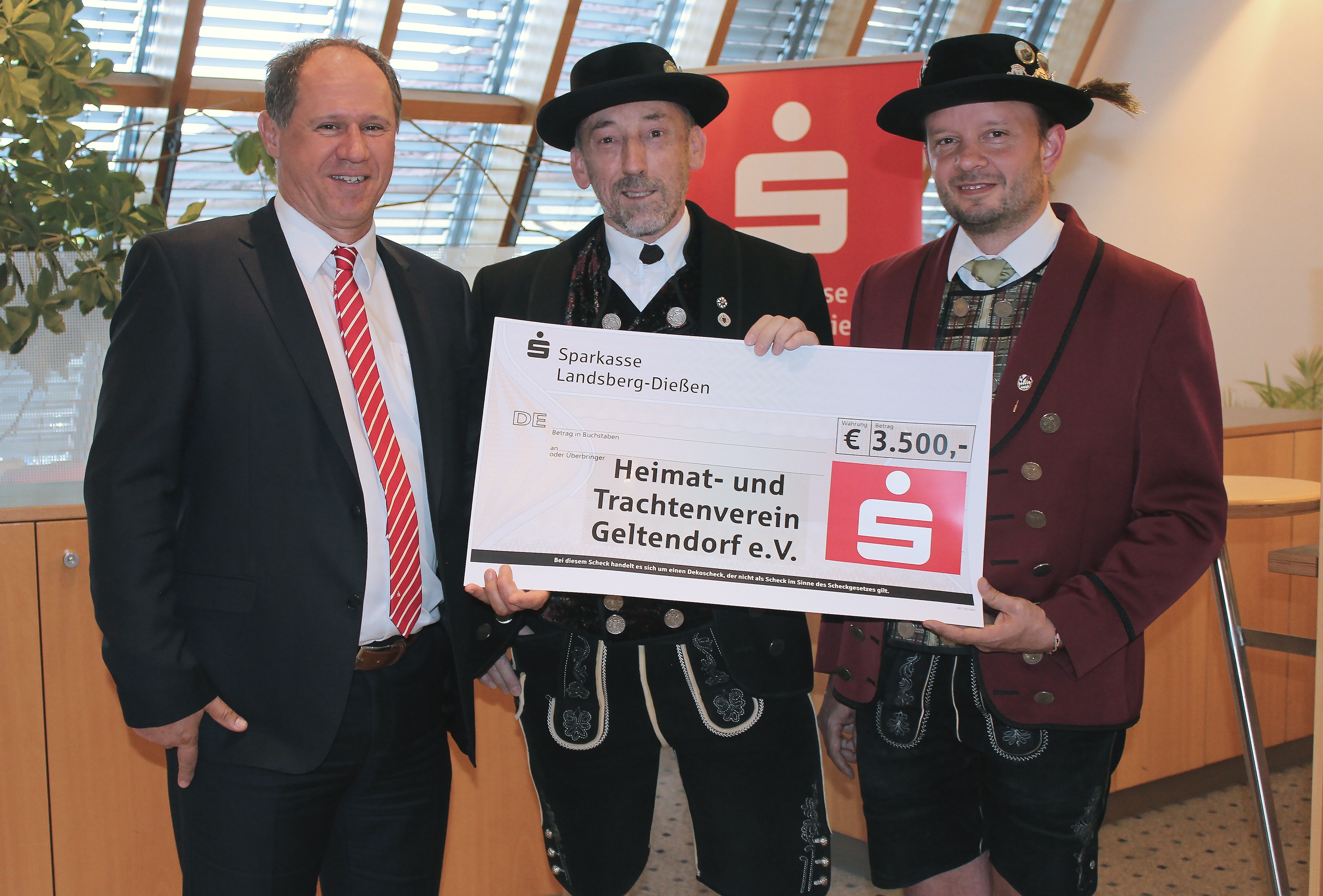 Unsere beiden Vorstände hatten einen Termin in der Sparkasse Geltendorf. Dort wurde ihnen, anlässlich unseres Jubiläums, ein symbolischer Scheck über 3.500 € von der Sparkassenstiftung Landsberg-Dießen durch den Leiter der Geschäftsstelle Geltendorf Jochen Gauger überreicht.